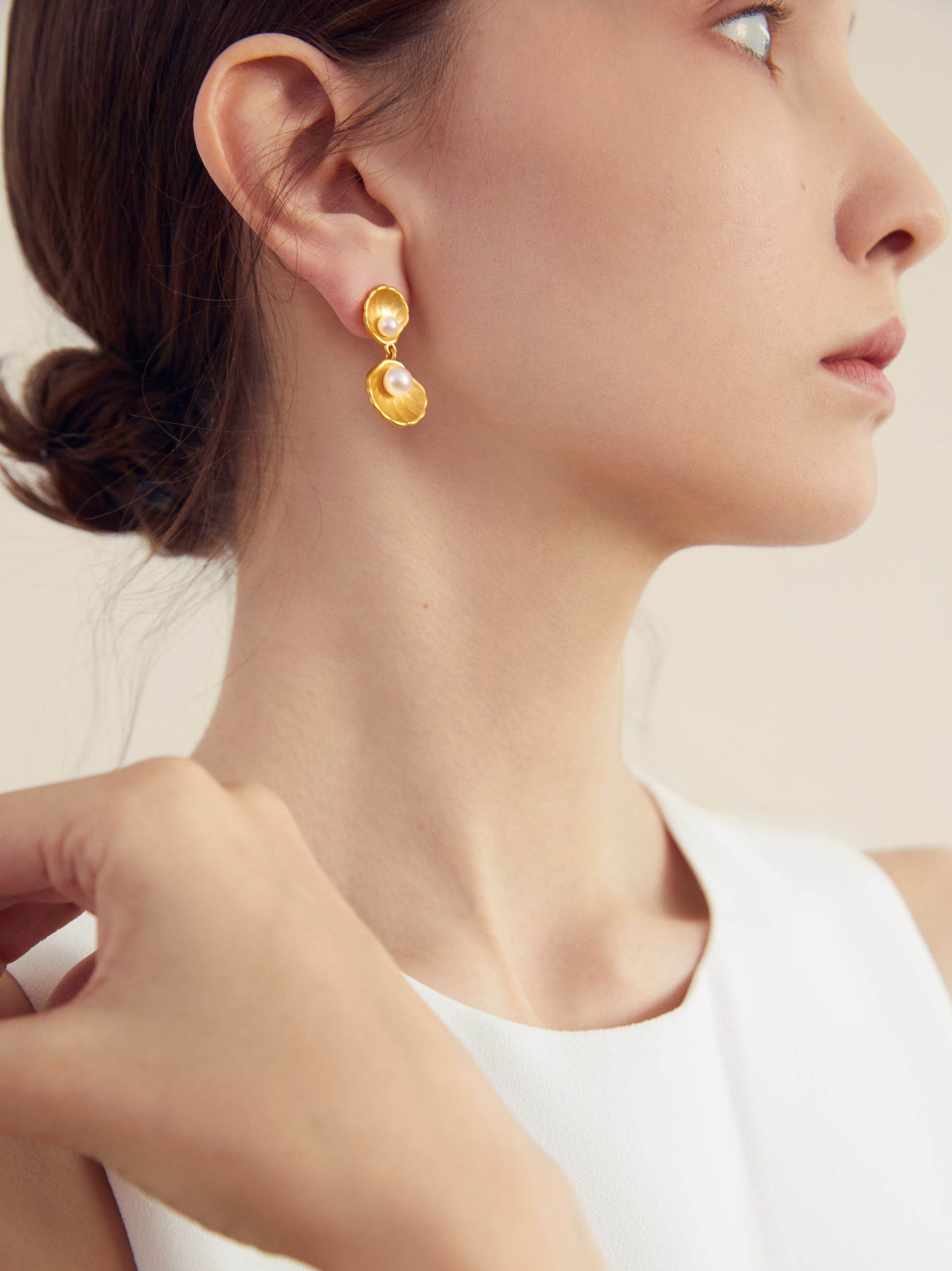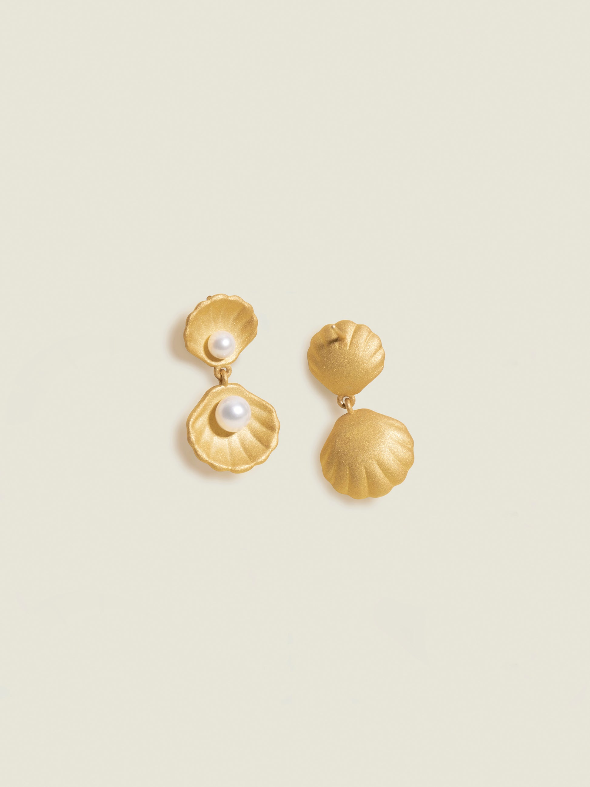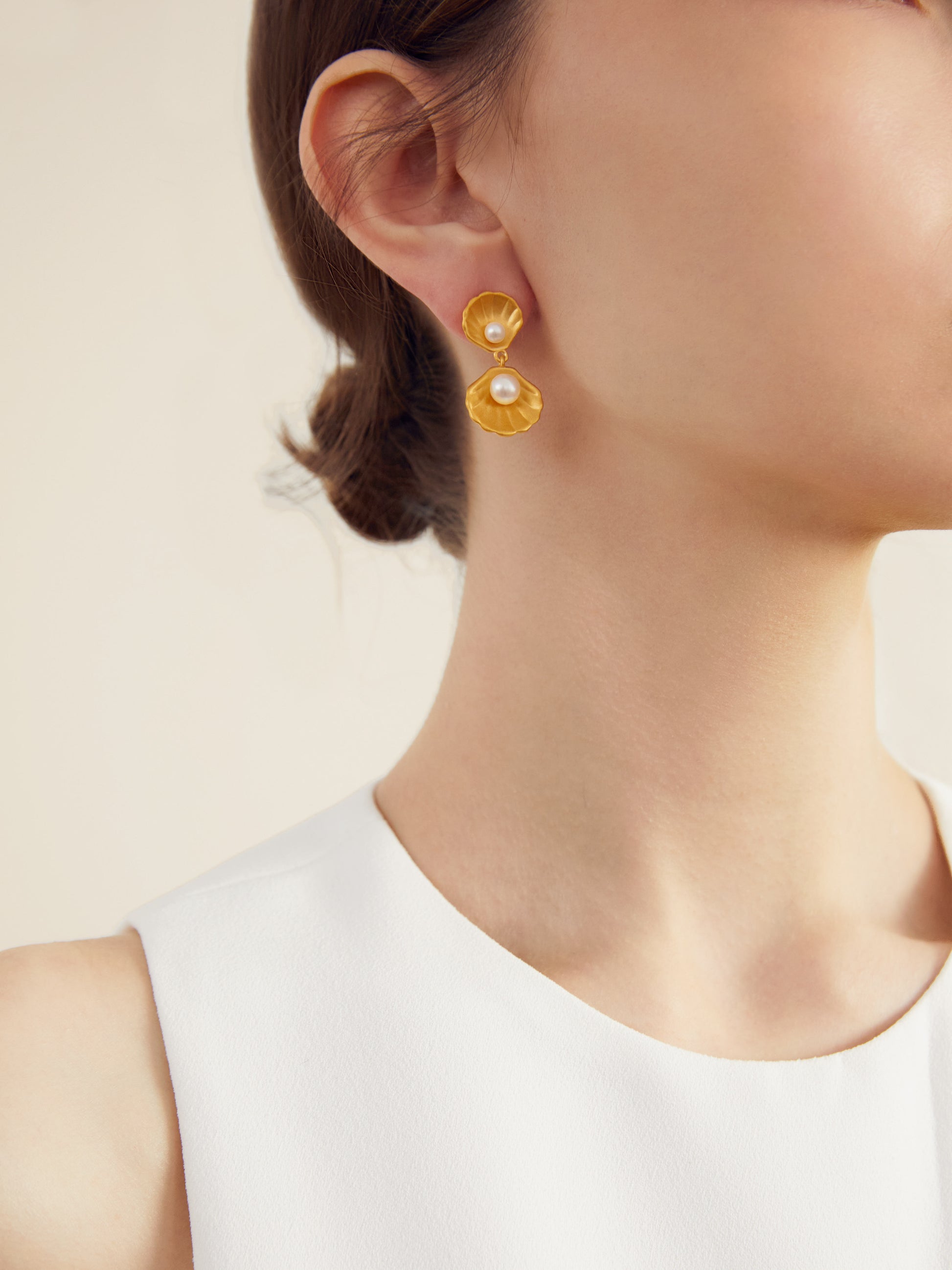 Inspired by The Birth of Venus, the Shell Pearl earrings capture the essence of Venus rising from the sea. The lustrous freshwater pearls, as pure and flawless as dawn, evoke the beauty of the goddess emerging from her shell. Set in delicate 24K gold vermeil, these earrings symbolize rebirth and grace, perfect for adding an ethereal touch to any look.