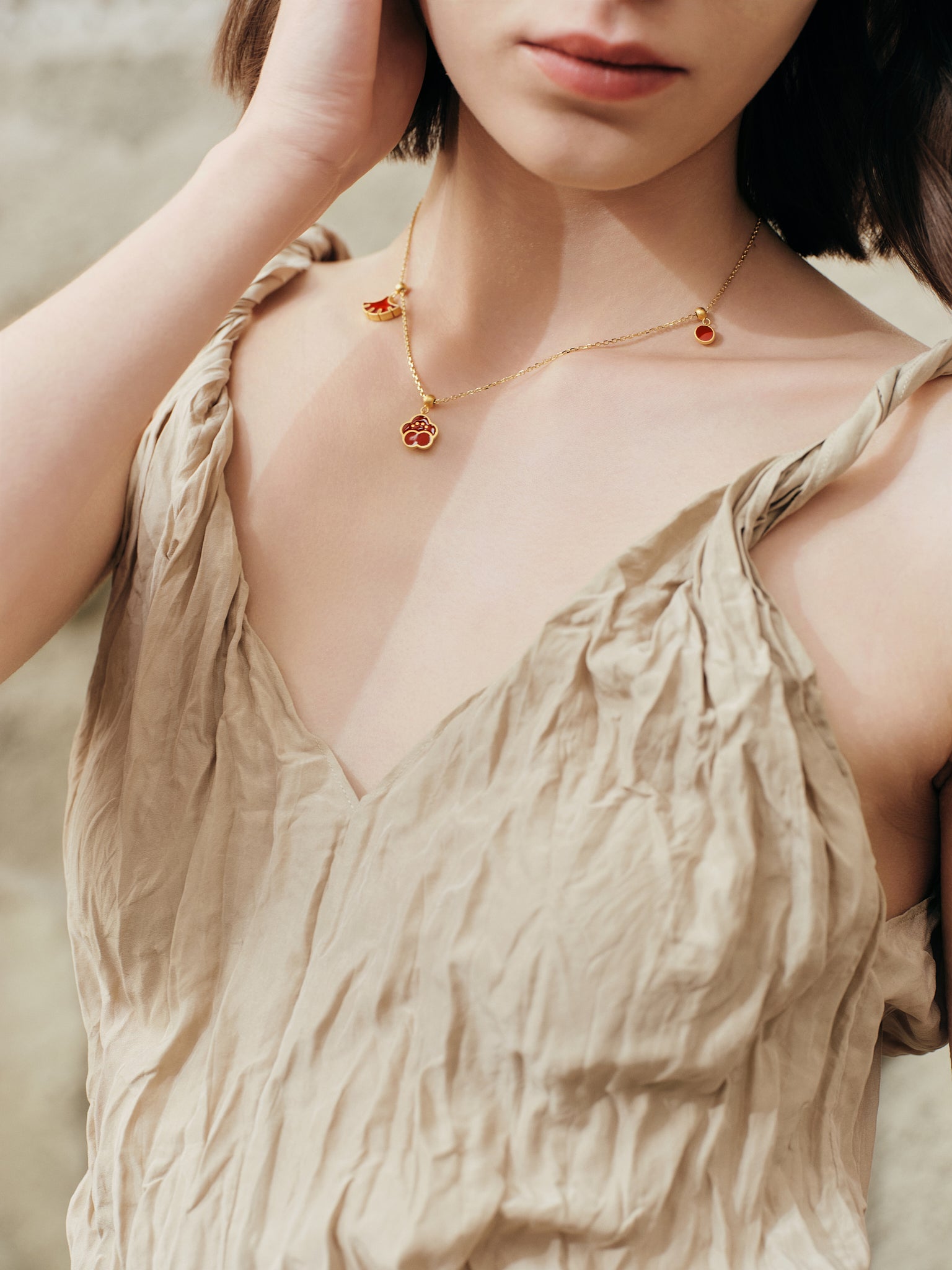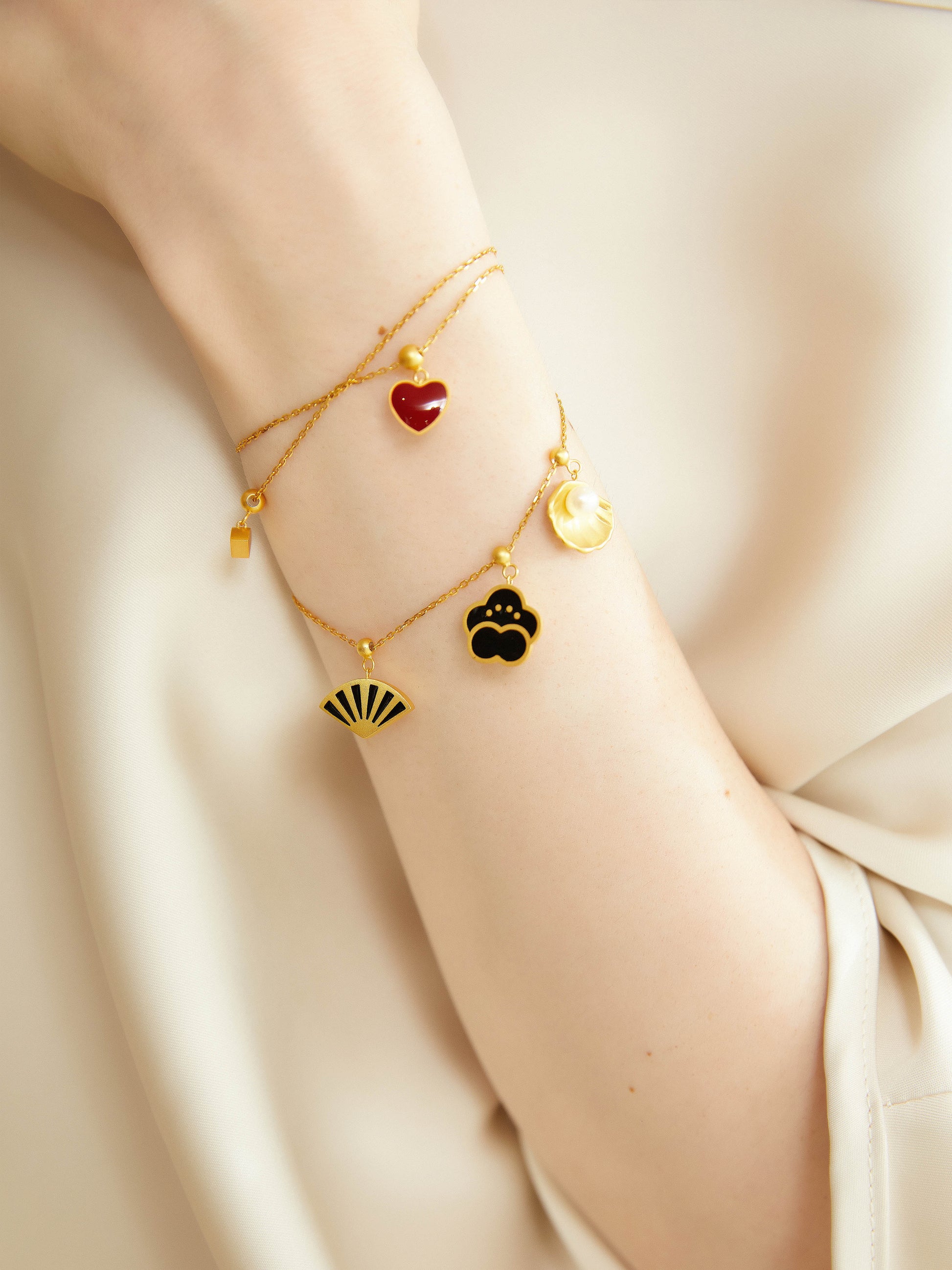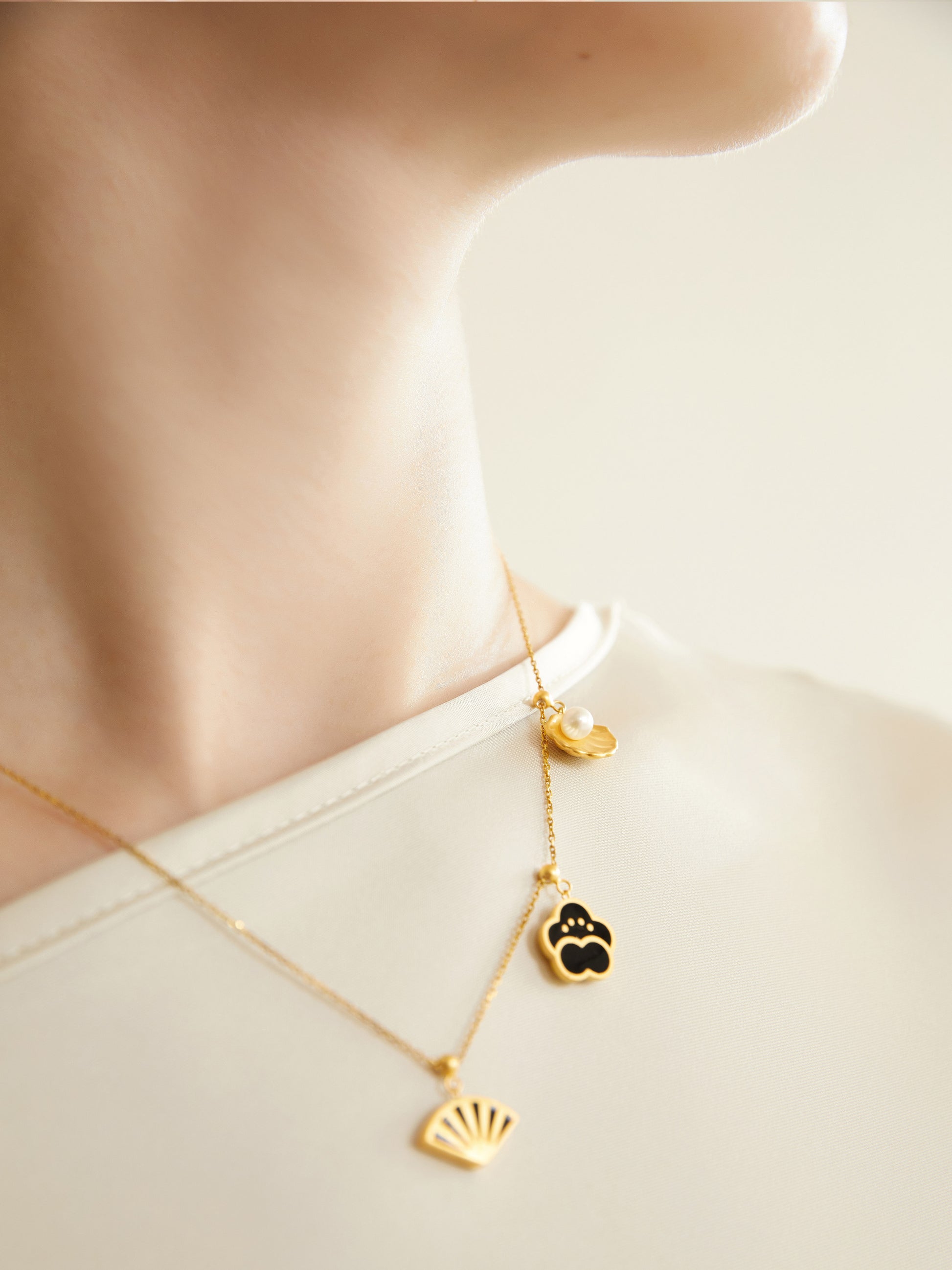 Welcome to explore one of our most playful designs, offering the freedom to choose and arrange your favorite charms at any spot along the chain—making it truly versatile. Select from a variety of charms, including a ginkgo leaf, shell, pearl, and cherry blossom, all crafted in shimmering gold-plated enamel. Each charm embodies our deep love for the nature surrounding Lake Biwa. Discover your perfect combination!