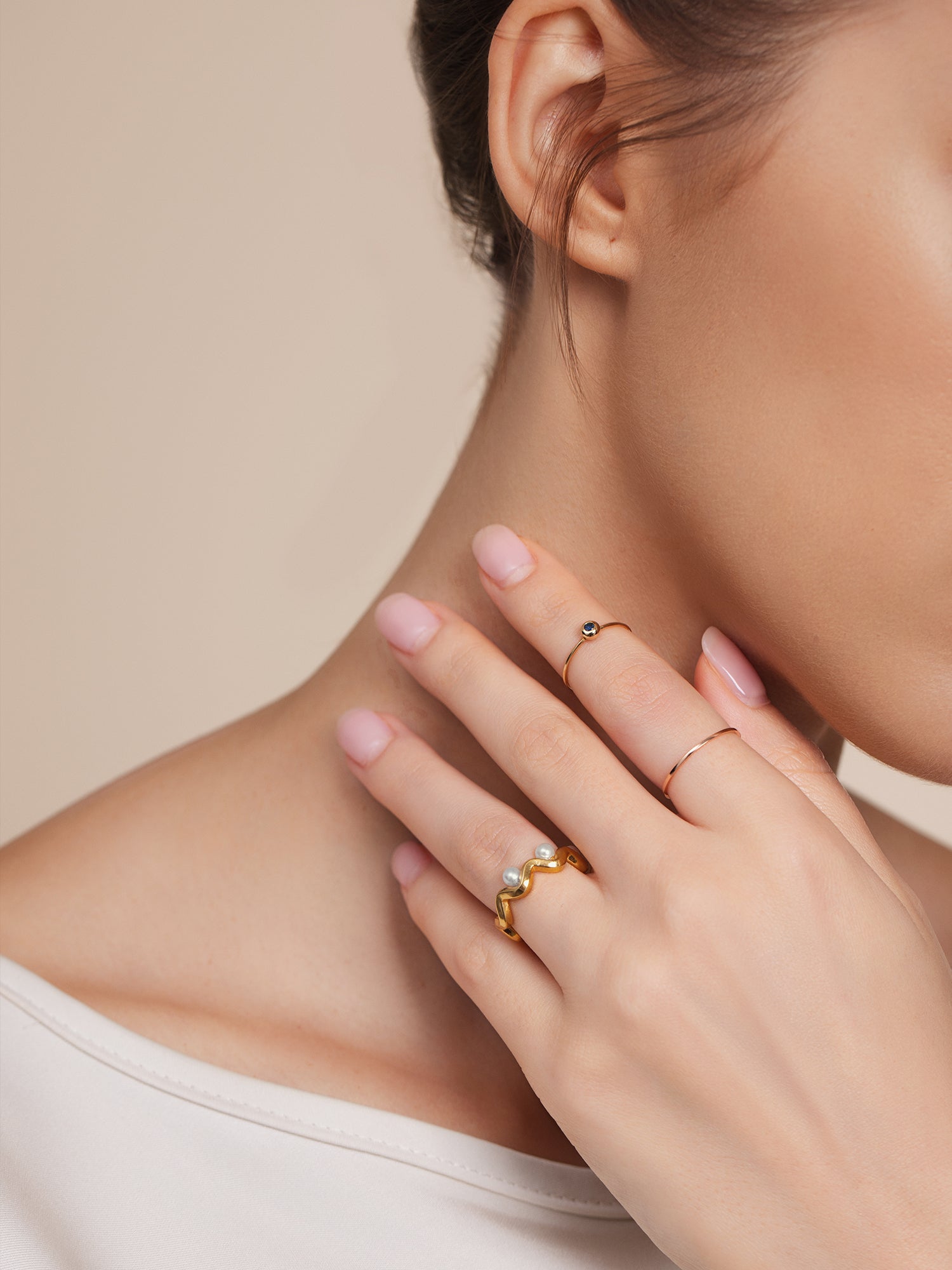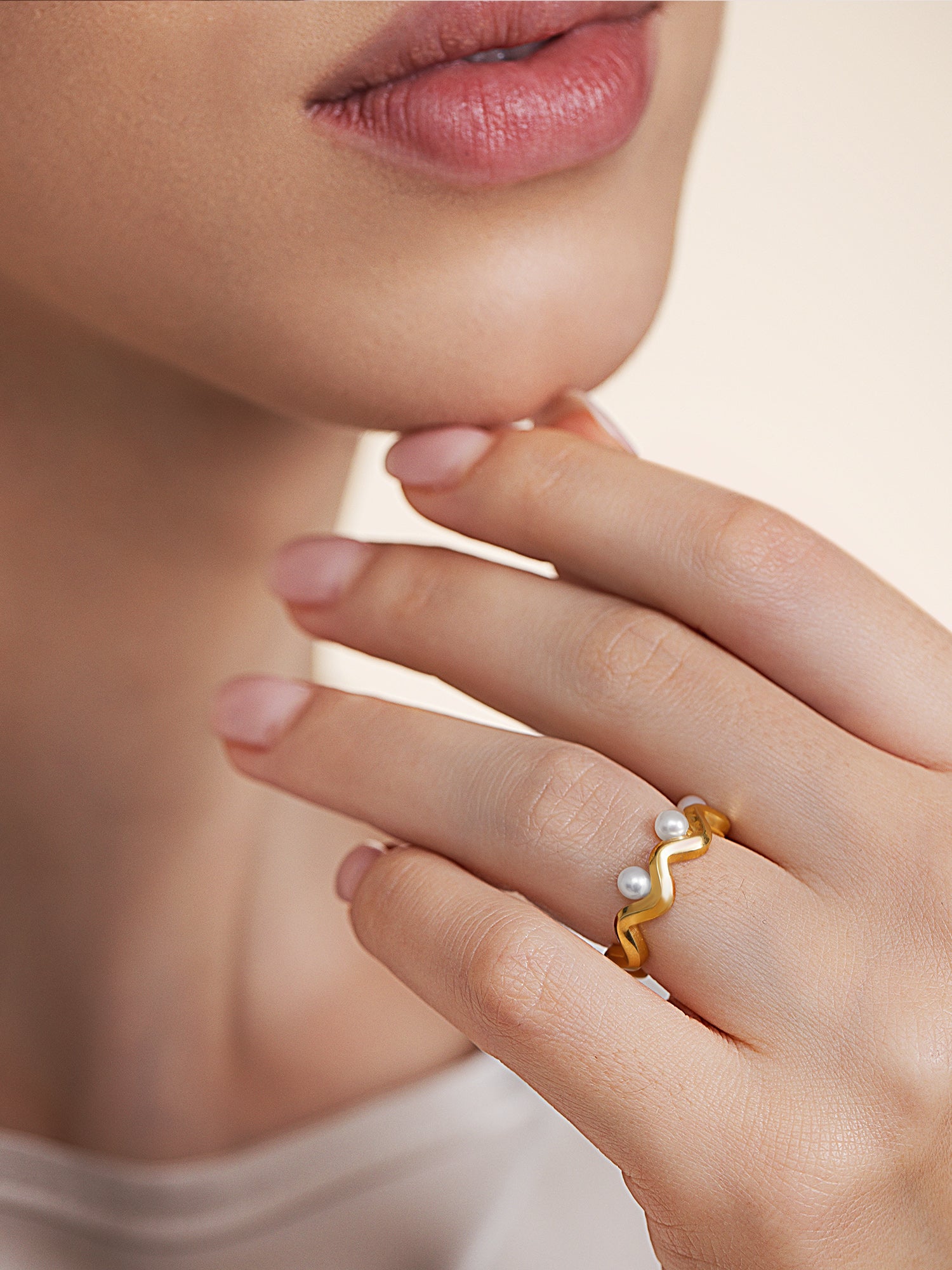 The Bubble Pearl Ring captures the beauty of the ocean, with soft, flowing curves that mimic the motion of gentle waves. The pearls, resembling delicate foam blossoms, sit atop the band like bubbles, born from the sea, destined to return to it, embodying the eternal cycle of nature's beauty.