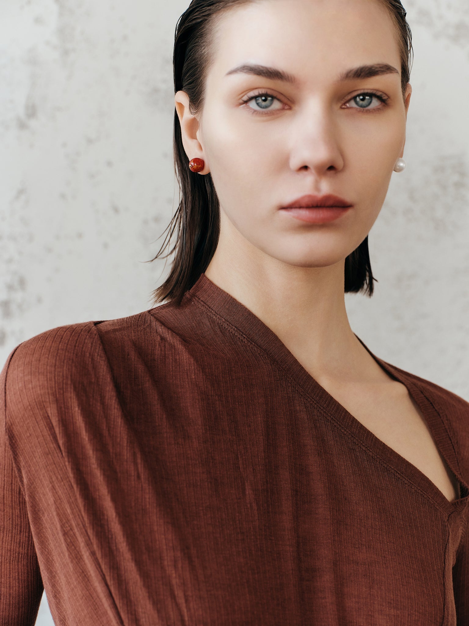 Dawn Clouds Studs (曙の雲 / Akebono no Kumo), inspired by red clouds at dawn, blending the strength of red with the lightness of white clouds. The earrings feature both a lustrous pearl and a vibrant red lacquer bead. In Japanese culture, this design represents the beginning of a new era or the moment when new possibilities emerge, embodying the promise of fresh beginnings.