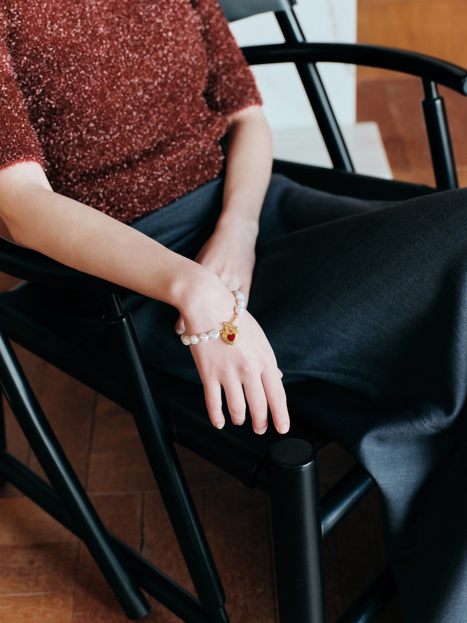 Bound by love and strengthened by courage, the Eternal Embrace Bracelet features a double-sided heart. The front is adorned in BIWAKO’s signature crimson enamel, encircled by delicate golden thorns, while the reverse unveils an openwork heart. The embrace between souls allows tender yet unyielding love to break through thorns and fill the heart. This piece celebrates the essence of love—to love, to embrace.