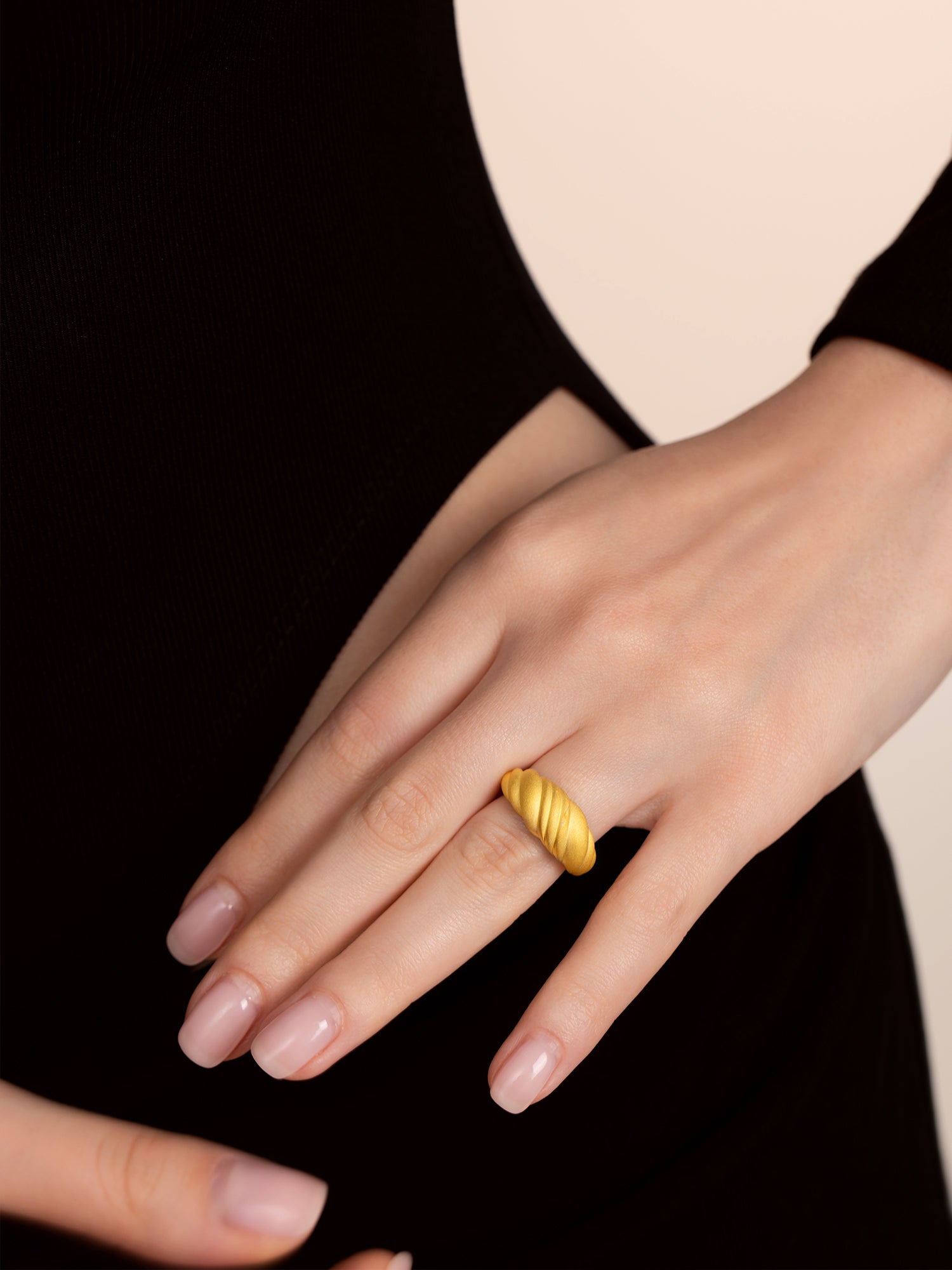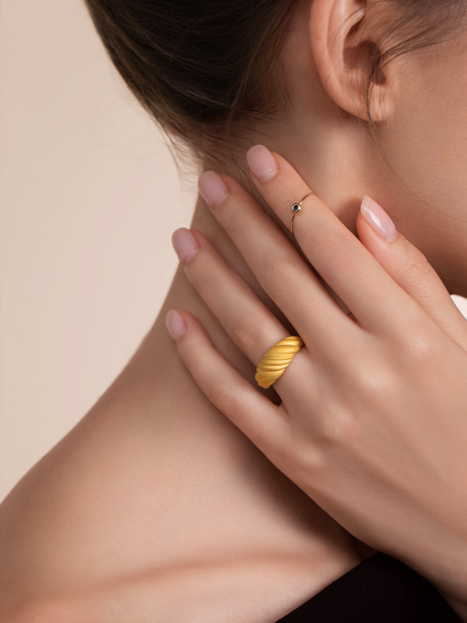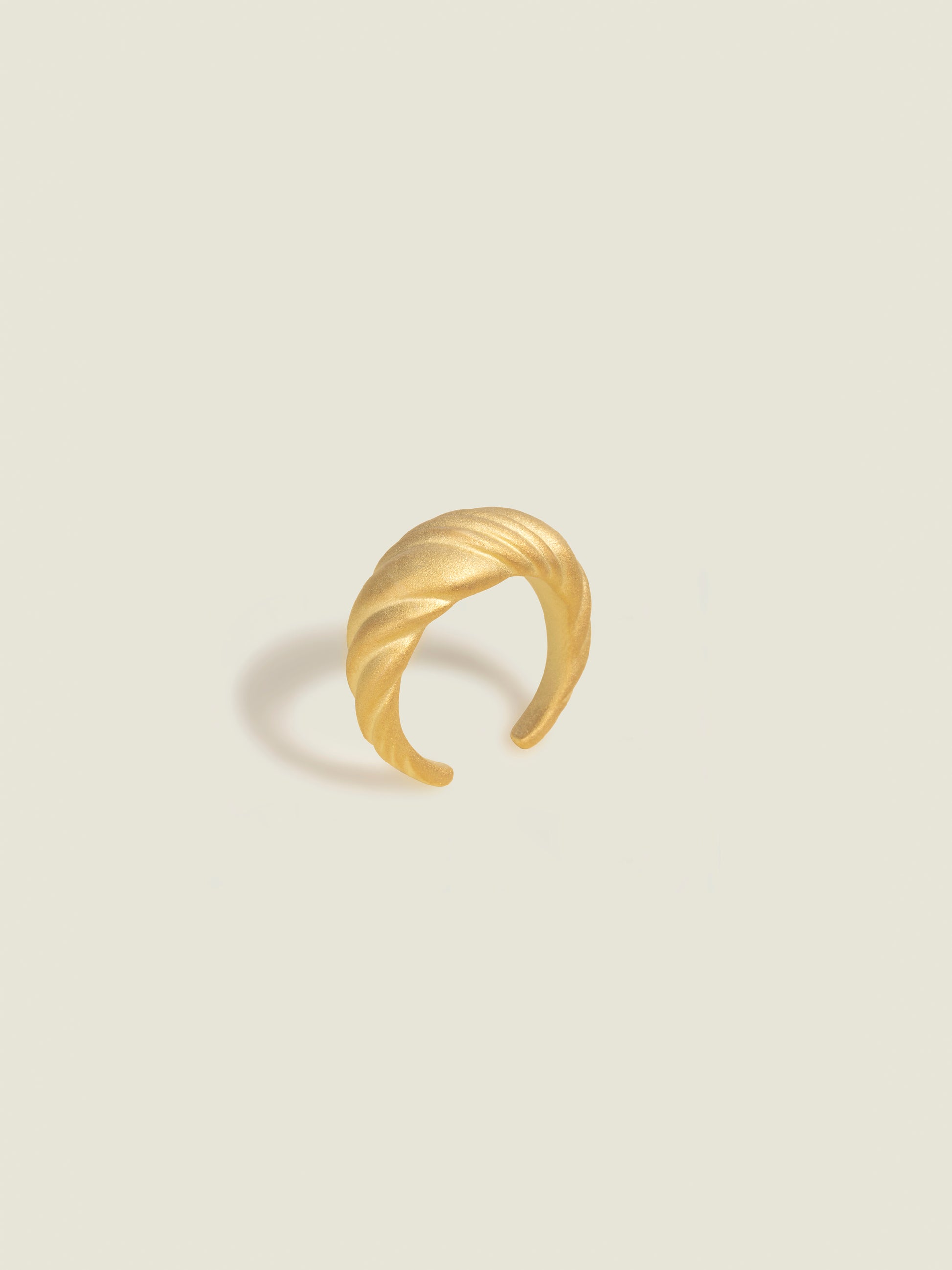 The Weave Golden Open Ring is a tribute to the beauty of simplicity and elegant design. Crafted from 24K gold vermeil, this open-ended ring offers a comfortable fit for various finger sizes. Its twisted helix motif, resembling intertwined strands of golden rope, wraps gracefully around the finger. This piece embodies the artful grace of golden threads, dancing with light and shadow, blending timeless fashion with modern trends.