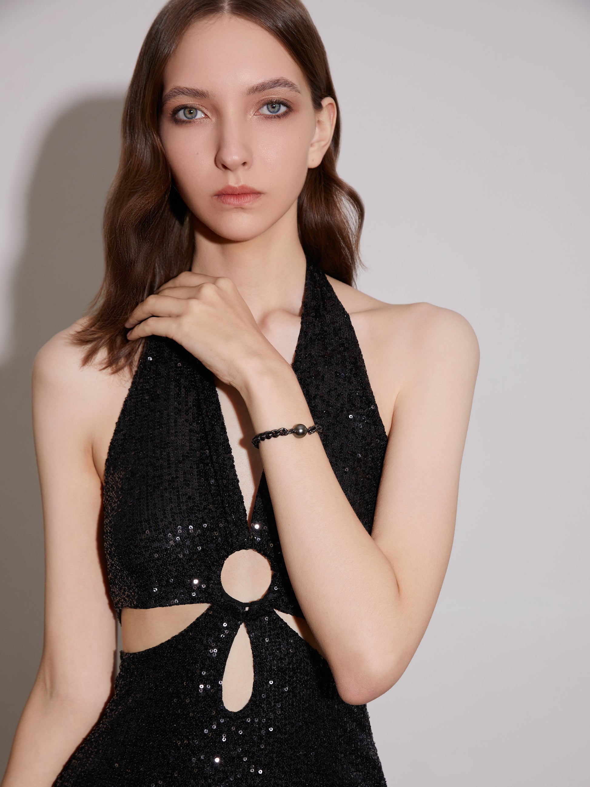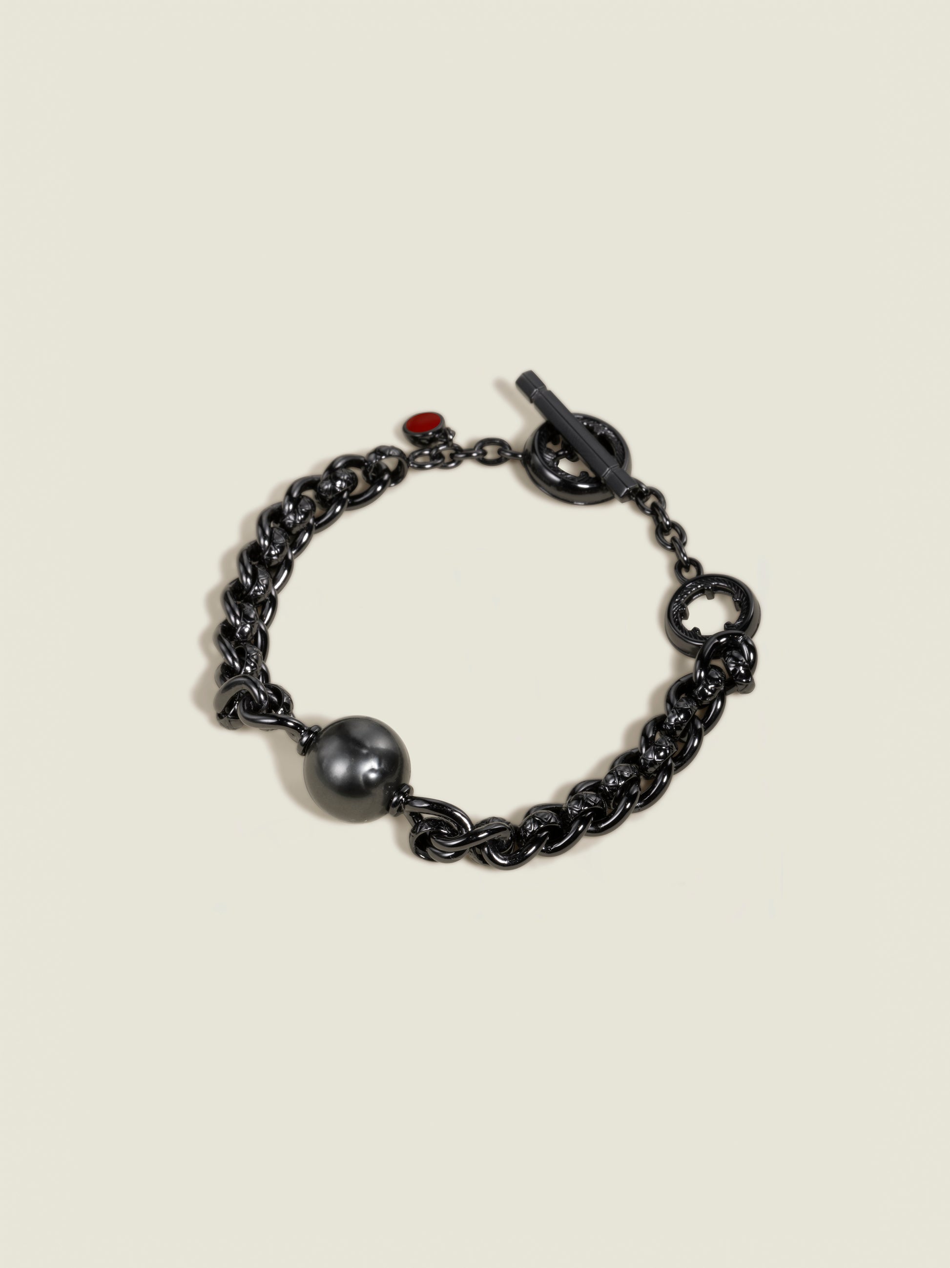 The Midnight Baroque Tahitian Pearl Bracelet is an exquisite blend of dark allure and unconventional beauty. Meticulously crafted from black sterling silver, it creates a striking contrast with the vivid enamel accents along its length. At its center rests a baroque Tahitian black pearl, celebrated for its rich colors and unique shape. Each pearl evokes the image of a moonlit droplet from the ocean’s depths, offering an enigmatic luster that shimmers with the light.