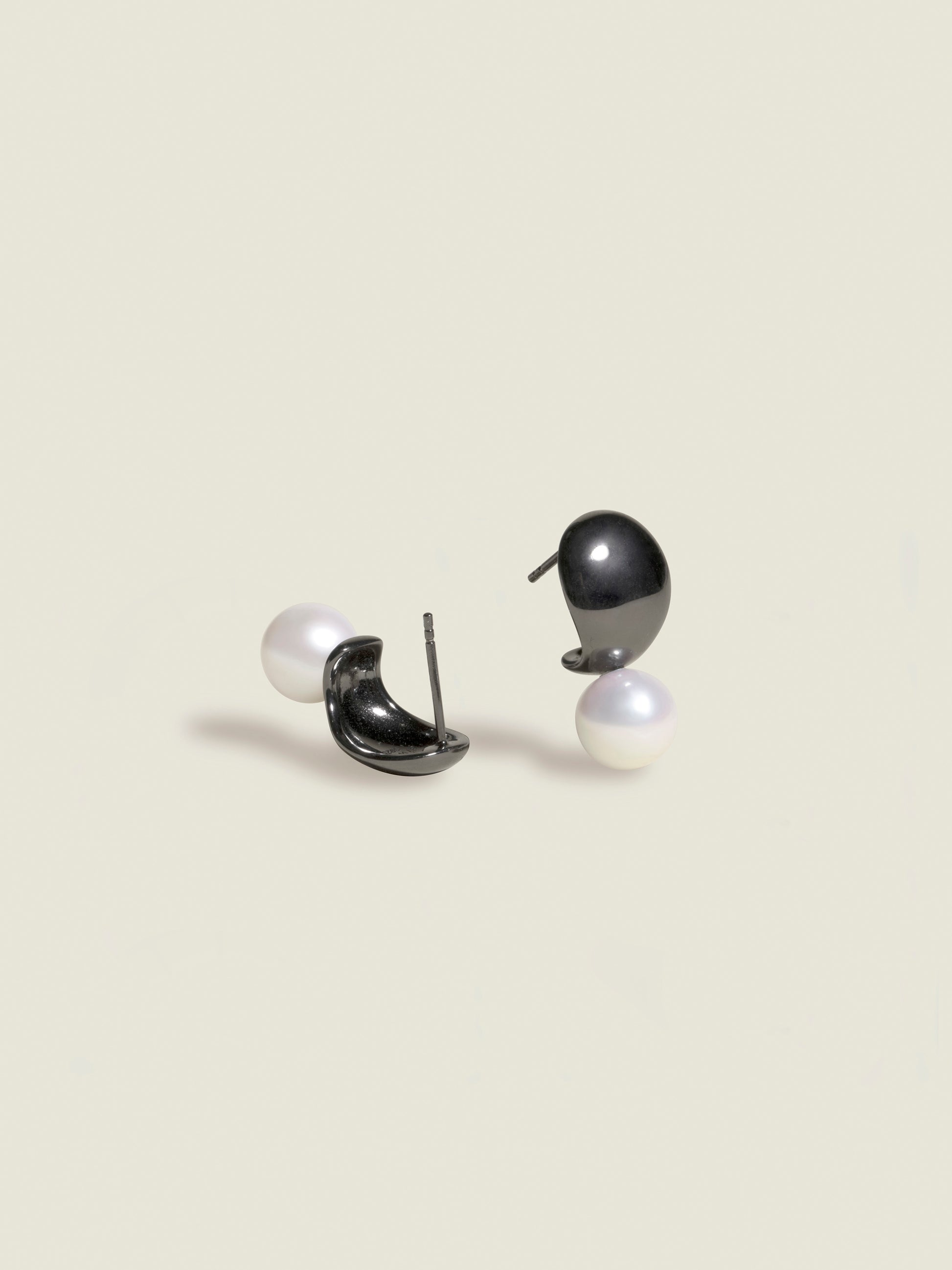 Black Crescent Sakura Pearl Studs