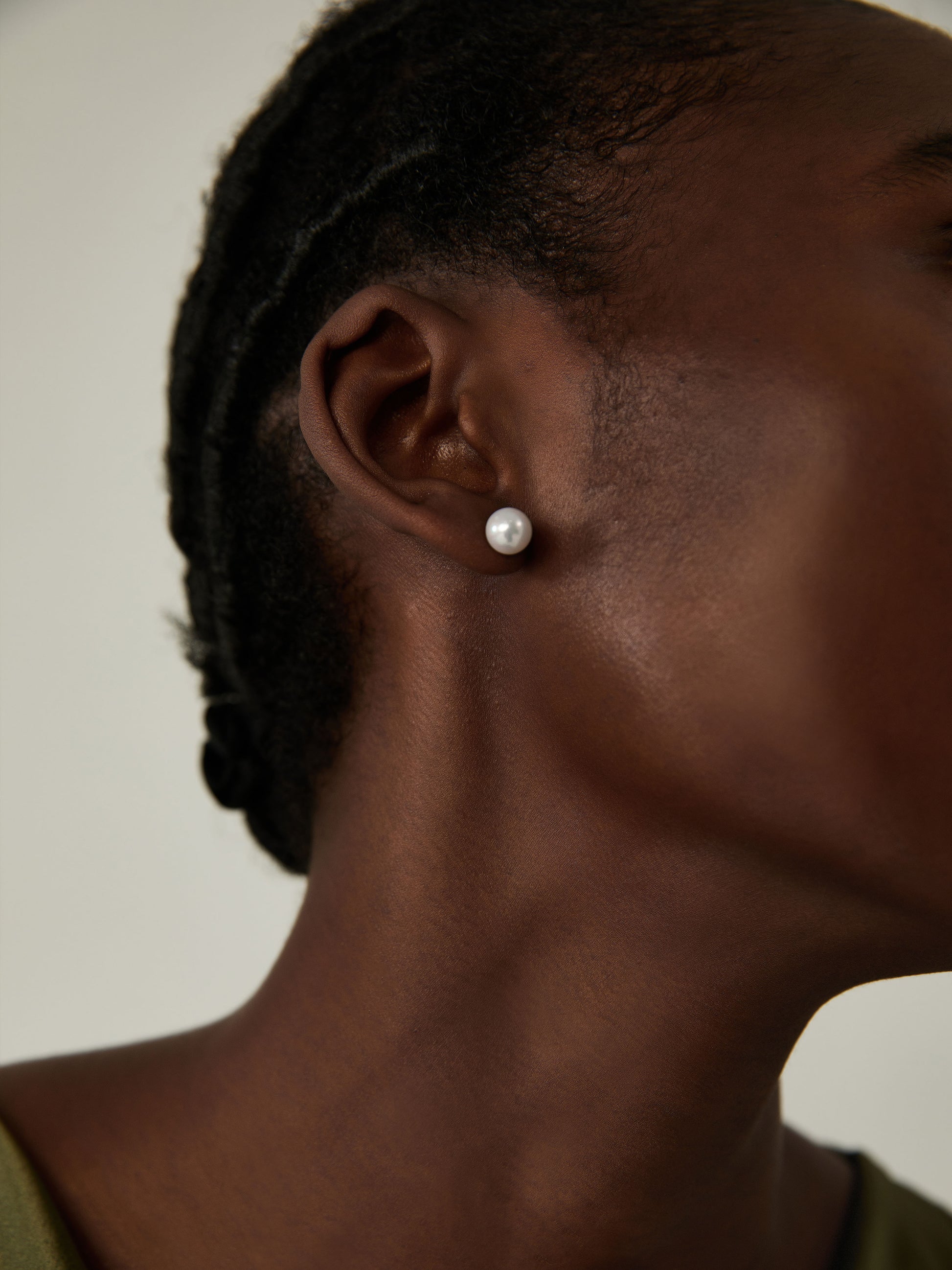 The Classic Pearl Earrings feature IZAYOI (Full Moon) - round pure white pearls with great luster, a clean surface, embodying the splendor, vitality, and perfection of a full moon in mid-August. Legend suggests that these pearls house the Eastern moon gods within their luminous forms, combining grandeur with the subtle gentleness of autumn. Embrace the timeless elegance of these minimalist pearl earrings, a perfect choice for any occasion, adding a touch of grace that is always appropriate.