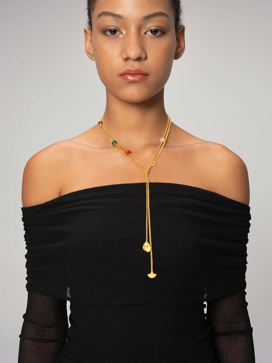 Tricolor-Gemstone Lariat Necklace